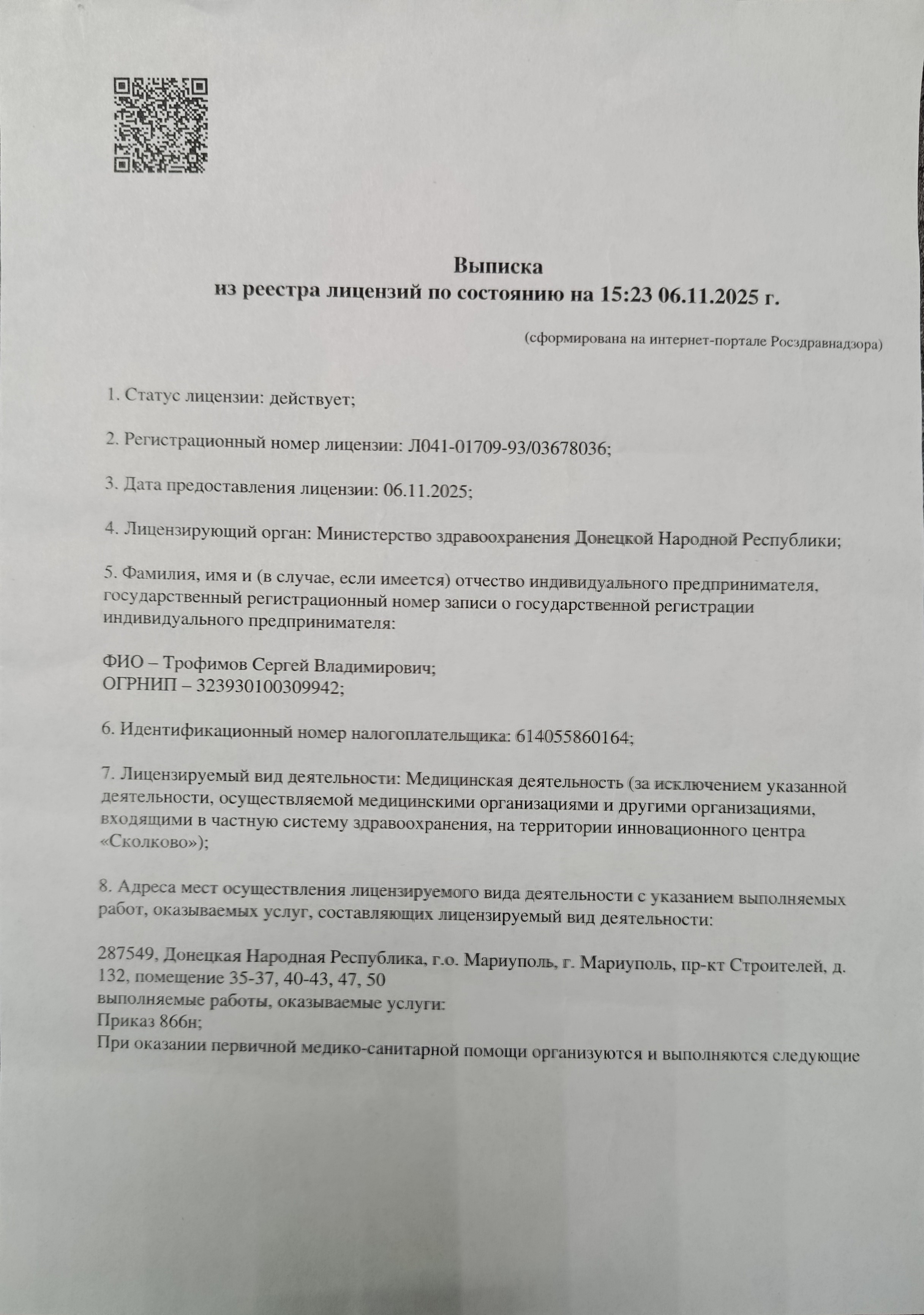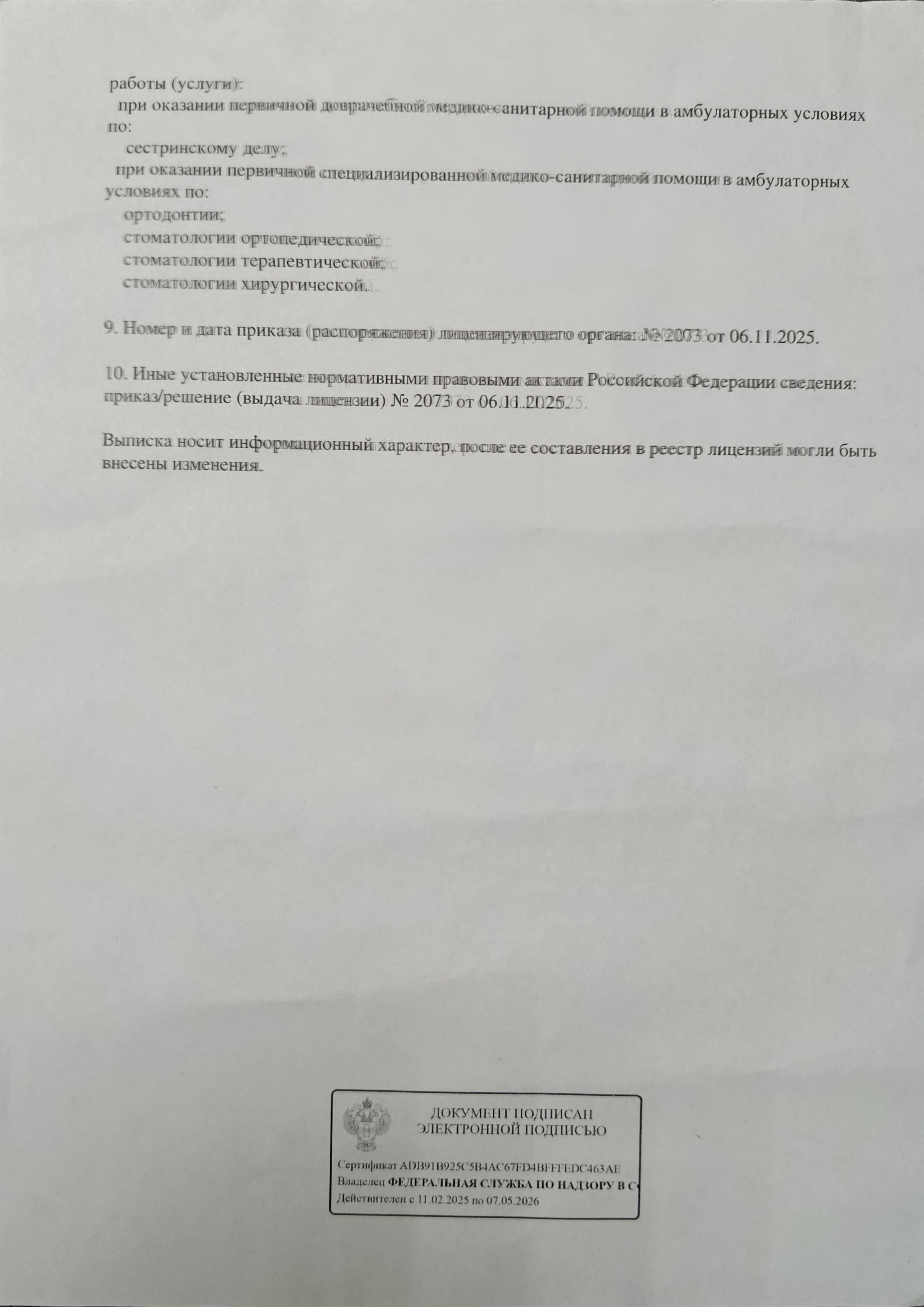 Выписка из реестра лицензий