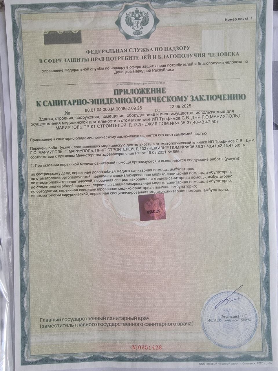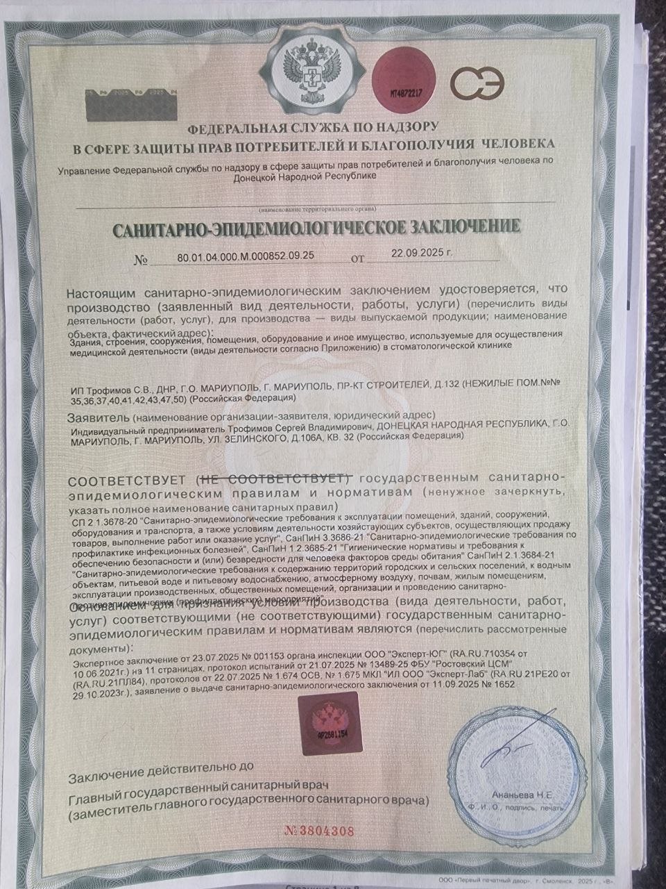 Санитарно-эпидемиологическое заключение